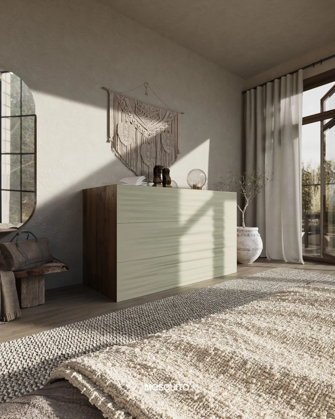 Com gavetas discretas, oferece amplo espaço de armazenamento. Seja na sala de estar, no escritório ou no quarto, este móvel adiciona um toque de sofisticação e calor natural a qualquer espaço.